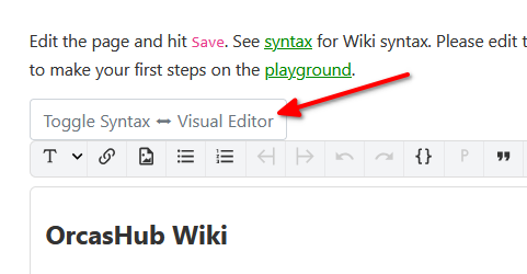 Once editing, it is helpful to ensure you are using the “Visual Editor”. If you see a heading surrounded by lots of equals signs, try clicking this button to make the editor a little more friendly